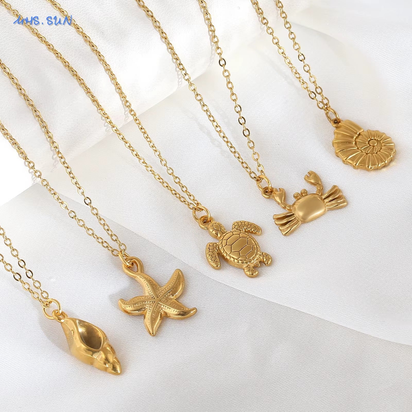 Collana legante e raffinata, arricchita da un ciondolo speciale a forma di stella marina o conchiglia. Il ciondolo può essere realizzato Realizzata in lega di alta qualità con finitura color oro o argento.